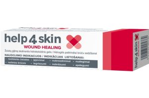 Help4Skin WOUND HEALING yra „inovatyvus“ hidrogelis, kuris reguliuoja drėgną žaizdos aplinką, uždengtą tvarsčiu.